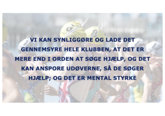 Vi kan synliggøre, sætte ord på og lade det gennemsyre i hele klubben, at det er mere end i orden at søge hjælp; det er endda mental SUPERPOWER at søge hjælp. Det vil sandsynligvis gøre, at udøverne i højere grad søger hjælp (Bird, Chow, Meir & Freeman, 2018).