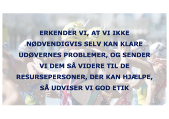 Vi bør erkende, at vi ikke nødvendigvis selv kan klare udøvernes problemer, og acceptere at det er god etik at ’sende’ udøveren videre til resursepersonen i klubben, der arbejder med og er tovholder på at forene mental sundhed og performance eller til praktikeren / sportspsykologen (Purcell, Gwyther & Rice, 2019).